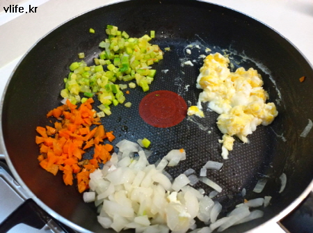 들어가는 재료는 냉장고에 있는 거 아무거나 상관없어요.