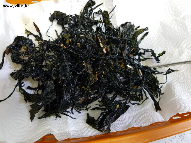 기름 많이 나올까 싶어 주방 티슈 깔고 담았는데 기름이 거의 안 나오네요.