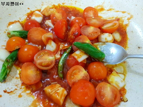 방울이와 물 조금 넣고 잠깐 볶아 마무리