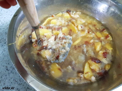 대추는 미지근한 식초물에 20여분 담갔다가 여러 번 씻었고, 껍질채 사용한 배도 식초물에 담갔다가 깨끗이 헹궈 씨 빼고 잘랐어요.