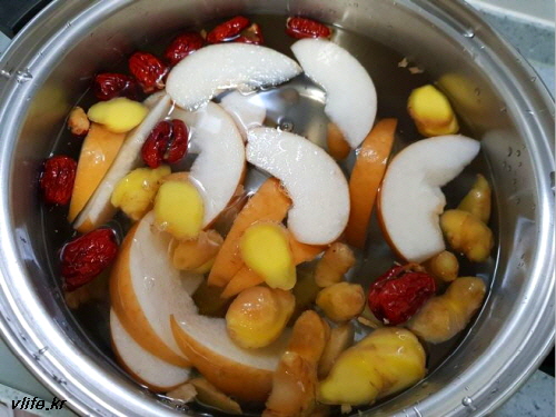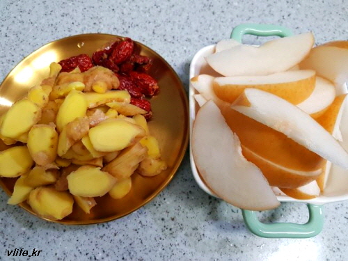 준비물; 생강, 배, 대추 한 줌(선택 사항), 꿀