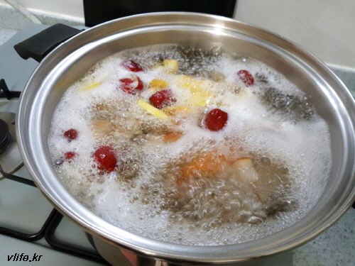 1시간 이상 끓일거라 넉넉한 물에 재료 모두 넣고 끓이기 시작