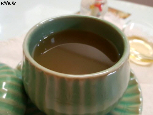 식혀서 냉장고에 두고 마실때마다 주전자나 냄비에 덜어 한소끔 끓여 찻잔에 따른 후 꿀 섞어 마셔요.