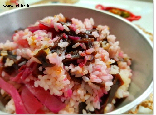 예쁜 빨간 무와 쫄깃한 말린 묵이 입맛을 확 살려줍니다.