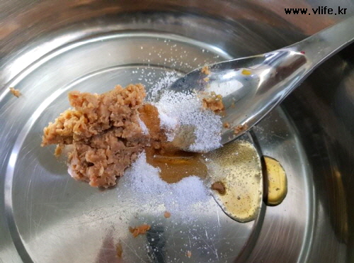 된장(간을 맞춘다기 보다 향을 낸다는 느낌으로 조금만)+설탕 조금+참기름 넣고 섞어