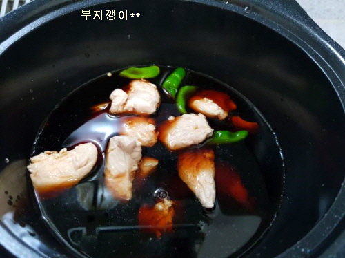 준비물; 닭안심, 달걀, 고추(청양), 생강, 통후추, 간장, 설탕