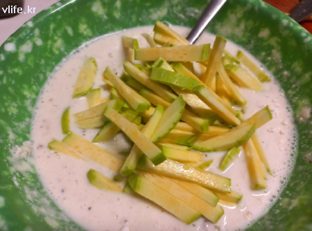 반죽이 조금 묽었지만 부침가루 더 섞기 싫어 그냥 했어요.