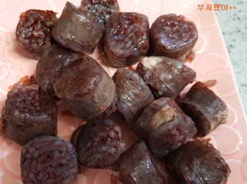 순대는 그냥 먹어도 좋을 만큼 전자레인지에 잠깐 돌렸어요.