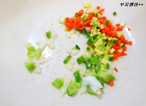 올리브유 두르고 파, 양파 볶아 향 올라오면 당근, 호박 넣어 볶아요.