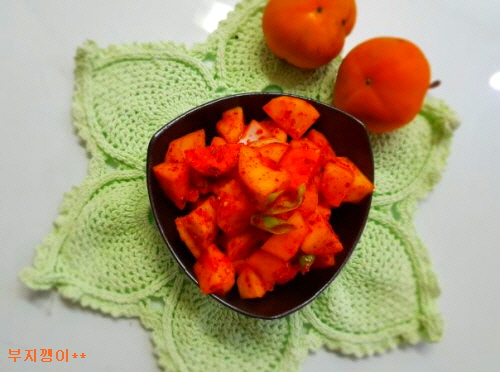 그냥 먹어도 맛있는 단감으로 깍두기 김치를 담갔어요.