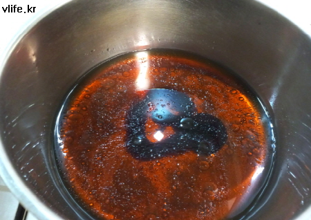 간장과 굴소스에 윤기 나라고 식용유 약간, 설탕과 물 섞어