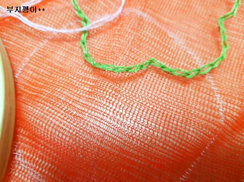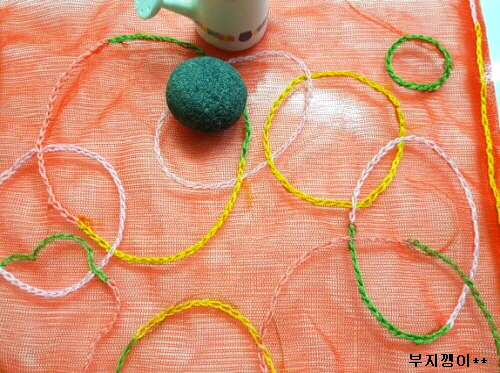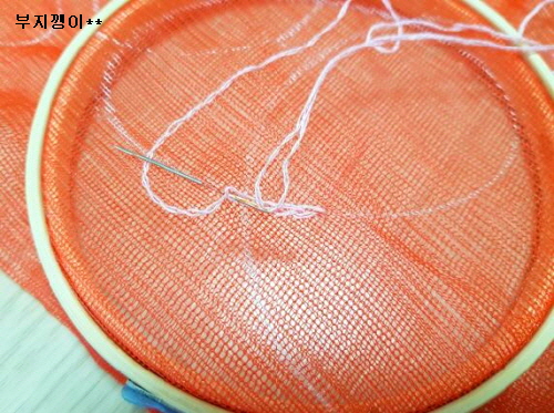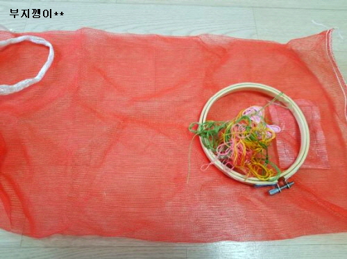 양파망은 깨끗이 세탁해 말렸고, 자수 세트는 사용하고 남은 거예요.