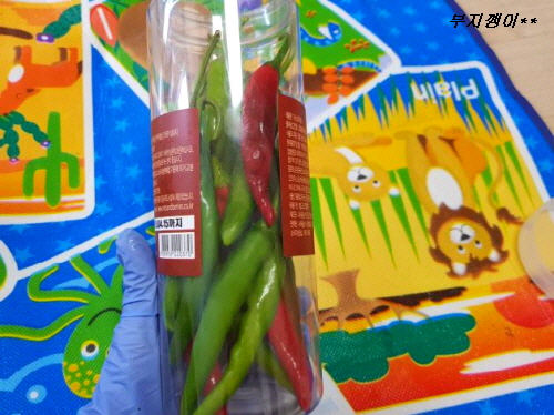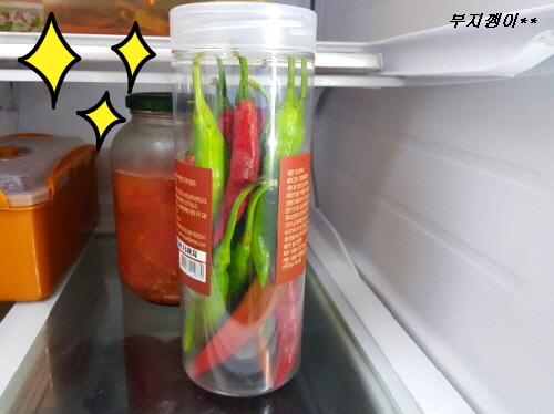 생 고추를 세워 넣을 수 있을 만한 통을 준비해서