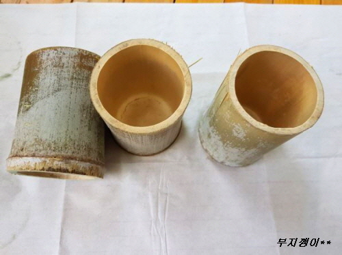 준비물; 대나무, 마 끈, 접착제, 세탁용 세제