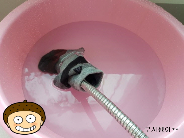 마구 움직이는 분사기 왼손으로 잡고 오른손으로만 빨래하느라 힘들고 번거로웠는데, 이젠 조물조물 손세탁이 재미있기도 해요. ^^