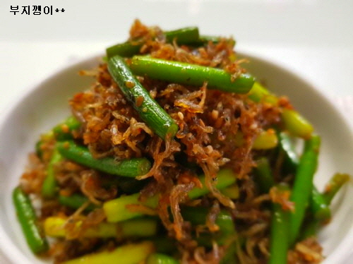 마늘쫑 멸치 볶음, 많은 양념 필요 없음