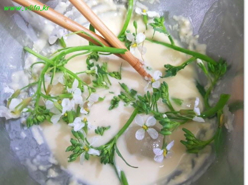 준비물; 열무 꽃대, 튀김가루, 식용유