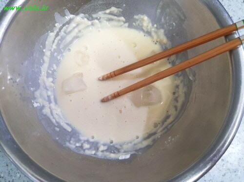 아마 반죽이 묻지 않아서 그런 것 같기도 한데 마른 가루 씌우고 반죽을 묻힐 걸 그랬나 봐요.