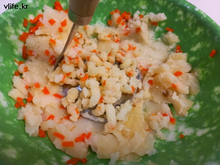 간 맞도록 소금 넣고 큰 포크나 도구 이용해 곱게 으깨서