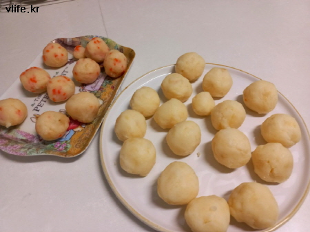 동그랗게 만들 때 좀 더 꽉꽉 눌렀으면 덜 풀렸을라나~