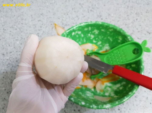 저 같은 경우에는 칼을 사용했을 때 보다 껍질이 얇게 벗겨지고 속도도 빨라져요.