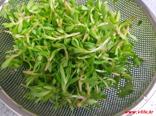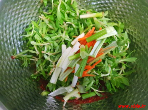 준비물; 돌나물, 당근, 파, 마늘, 고춧가루, 액젓, 설탕, 깨소금 약간