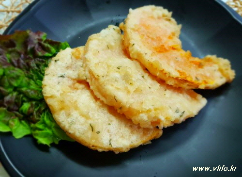 약간 도톰하게 썰어 식성에 맞춰 소금 조금 뿌려 잠깐 절여도 되고, 아니면 그냥 튀긴 뒤 간장에 찍어 먹어요.