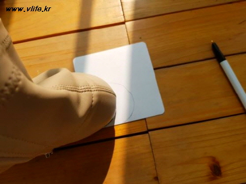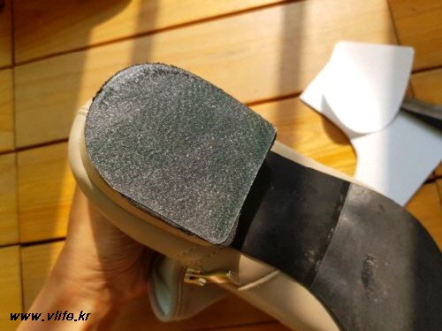 뒷 굽 밑창만 붙여도 될 것 같아 스티커를 뒤집어 모양을 본 떴어요.