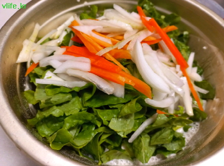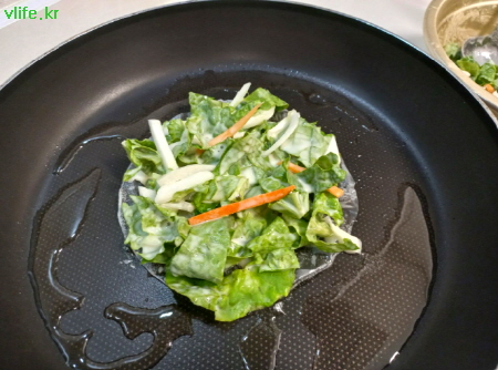 재료; 상추, 양파, 당근, 라이스페이퍼, 부침가루, 식용유