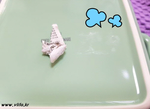 이럴 때는 뜨거운 물에 적셔 불려서 수세미로 살살 밀어주면 완벽히 제거돼요.
