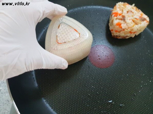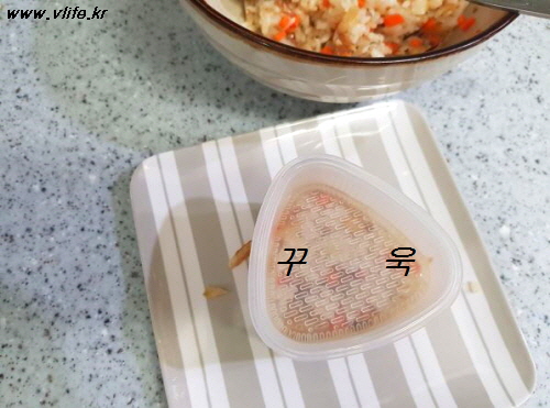 주먹밥 틀(손으로 꽉꽉 힘주어 뭉치거나)에 눌러 담고