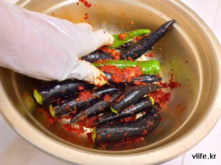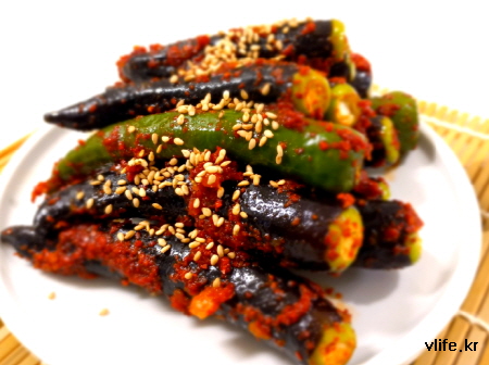 보라색 통 가지고추 무침, 맵찔이 안성맞춤