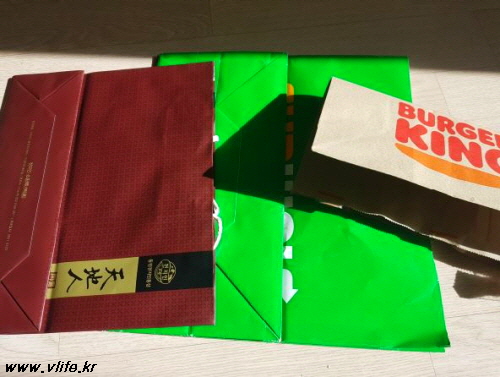 두껍고 탄탄한 종이 가방이면 훨씬 더 깔끔했을 텐데, 손에 잡히는 거로 생각 없이 했더니 좀 헤벌레~~ ㅎ