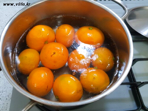 첫 번째 귤 청, 끓는 물에 10초 데쳐