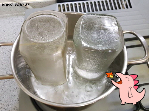 처음부터 찬 물에 넣고 5분 끓이고 5분 그대로 두고 흔들어 물 털고 똑바로 세워 자연 건조시켜요.
