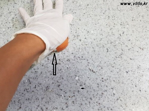 찬물에 담가 두어 열기 식혀 바닥에 '톡' 내리친 뒤 손바닥 전체를 이용해 잔금이 가는 게 느껴질 만큼 살짝 힘주어 앞으로 '드르륵'밀면