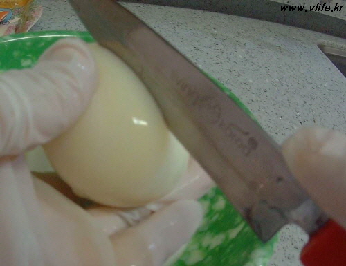 처음 달걀 삶을 때 굴려 주지 않았더니 노른자가 한쪽으로 쏠렸어요....