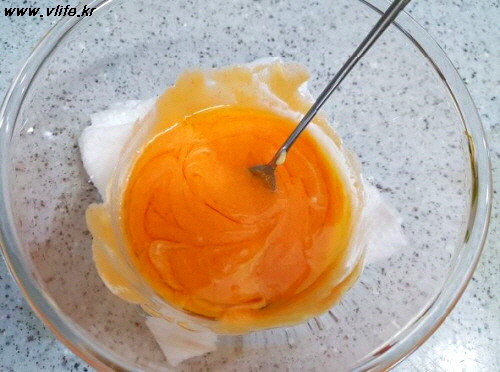 일회용 봉투에 고르게 펴 담아 냉장고에 1시간쯤 두었어요.