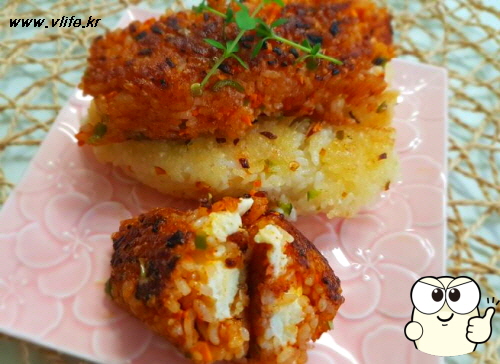 사진이 날아갔는데 치즈에 밥을 꾹꾹 눌러 붙여요.