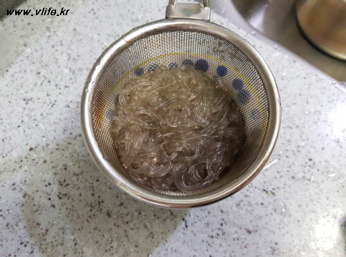 익히는 시간 줄이려고 당면을 미리 물에 불려 끓는 물에 익도록 삶아