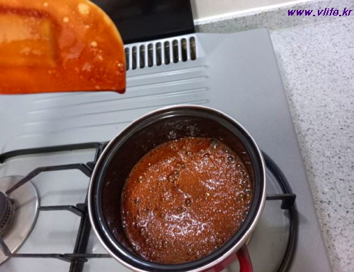 처음보다 졸이는 시간을 줄여서 틀에 넣어 냉장고에 하루정도 두었는데...
