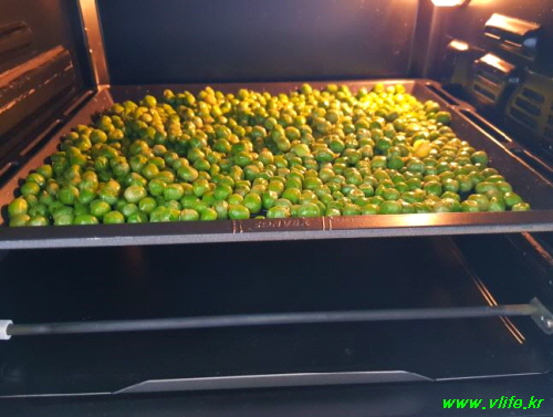 준비물; 완두콩, 소금, 맛술, 식초, 가루 겨자, 가루 와사비, 올리브 오일, 올리고당
