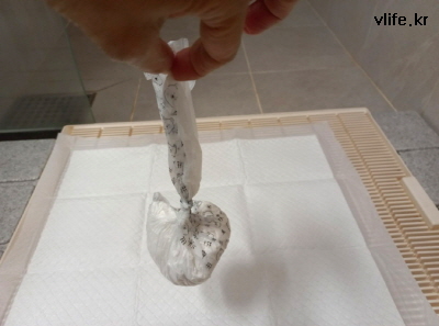 아직도 가끔 바닥에 실례를 하긴 하는데 패드에 올라가서 하는 횟수가 조금씩 늘어나고 있어요.