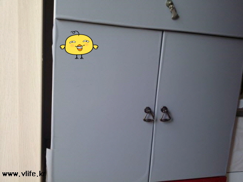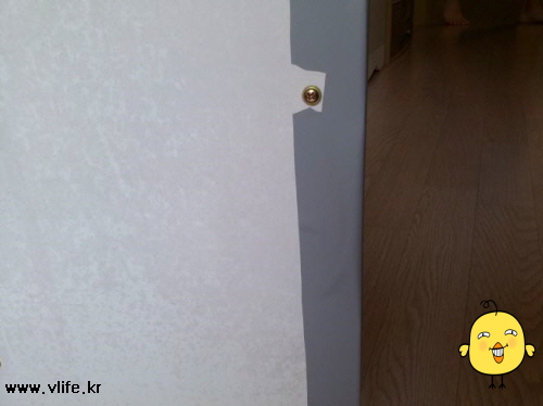 원래는 자줏빛, 낡아서 떼어 내고 회색 시트지 붙였는데 보다시피 엉망진창