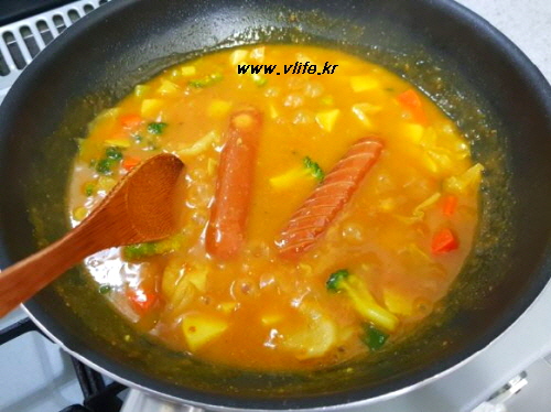 카레 가루 덩어리지지 않게 잘 풀어 넣고