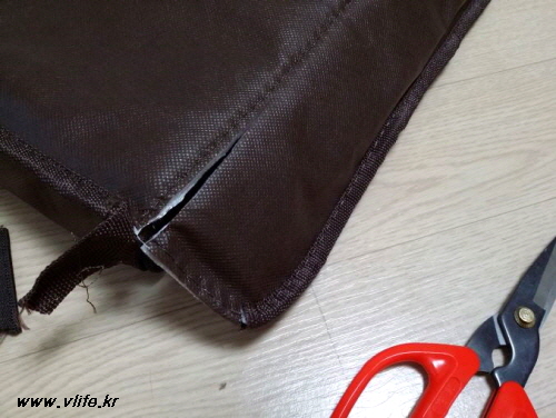 두께도 줄이고 바느질 하기 쉽게 바느질할 가장자리의 속 보충제는 잘라내고