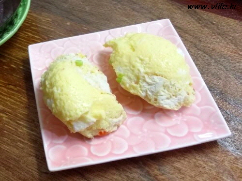 물 양은 달걀의 1/2인데 저는 좀 빡빡한 느낌이더군요. 두부가 들어가서 일까요?