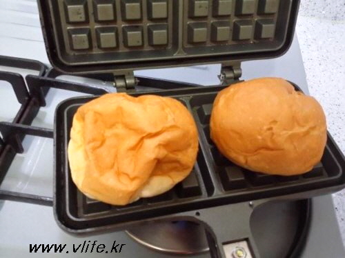 와플팬에 모닝빵 굽기, 이렇게도 굽고