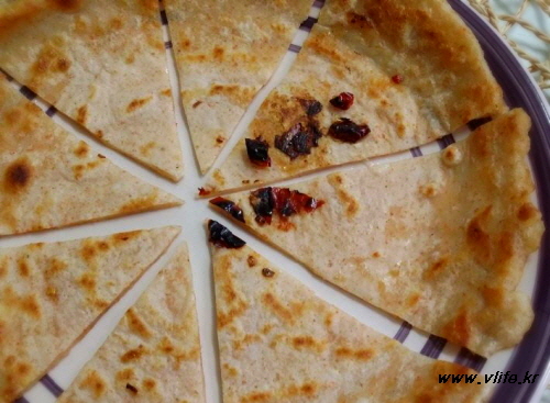 쌀밀가루에 소금 조금 넣고 반죽, 당연히 부침가루나 밀가루도 좋아요.