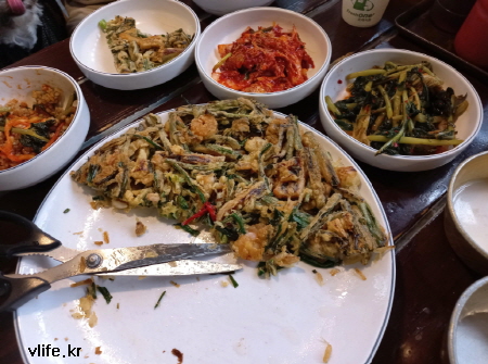 해물 파전 비주얼에 허겁지겁 맛보다 보니 사진은 중간에 찰칵 ㅎ